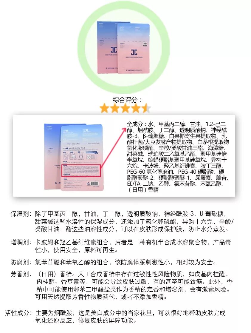 我们的品质研究媛Amy经过对每款面膜的全成分分析比对,得出下面的结论,先来看看获得“推荐”的两款面膜: