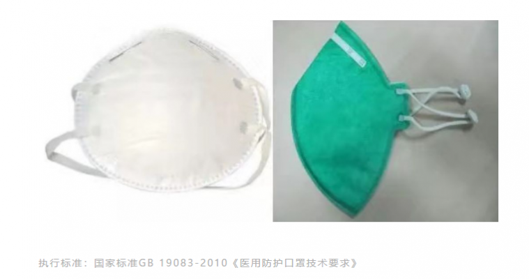 临床操作人员在有创环境中常用的医用口罩,可阻隔血液、体液穿过口罩污染佩戴者,同时对细菌的过滤效率达到95%以上,但对颗粒的过滤效率有限,且多为长方形设计,与面部的密合性不如医用防护口罩那么严密。